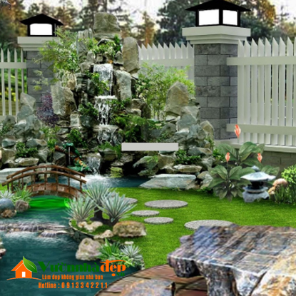 Bao gồm tất cả chi phí xây tô, ốp gạch, thác nước, đèn chiếu sáng.