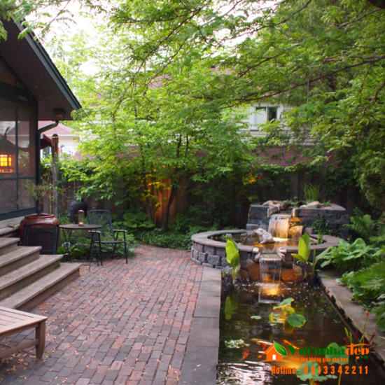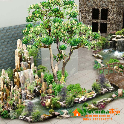 Giá trọn gói gồm xây, lót gạch bồn hoa, hồ nước...