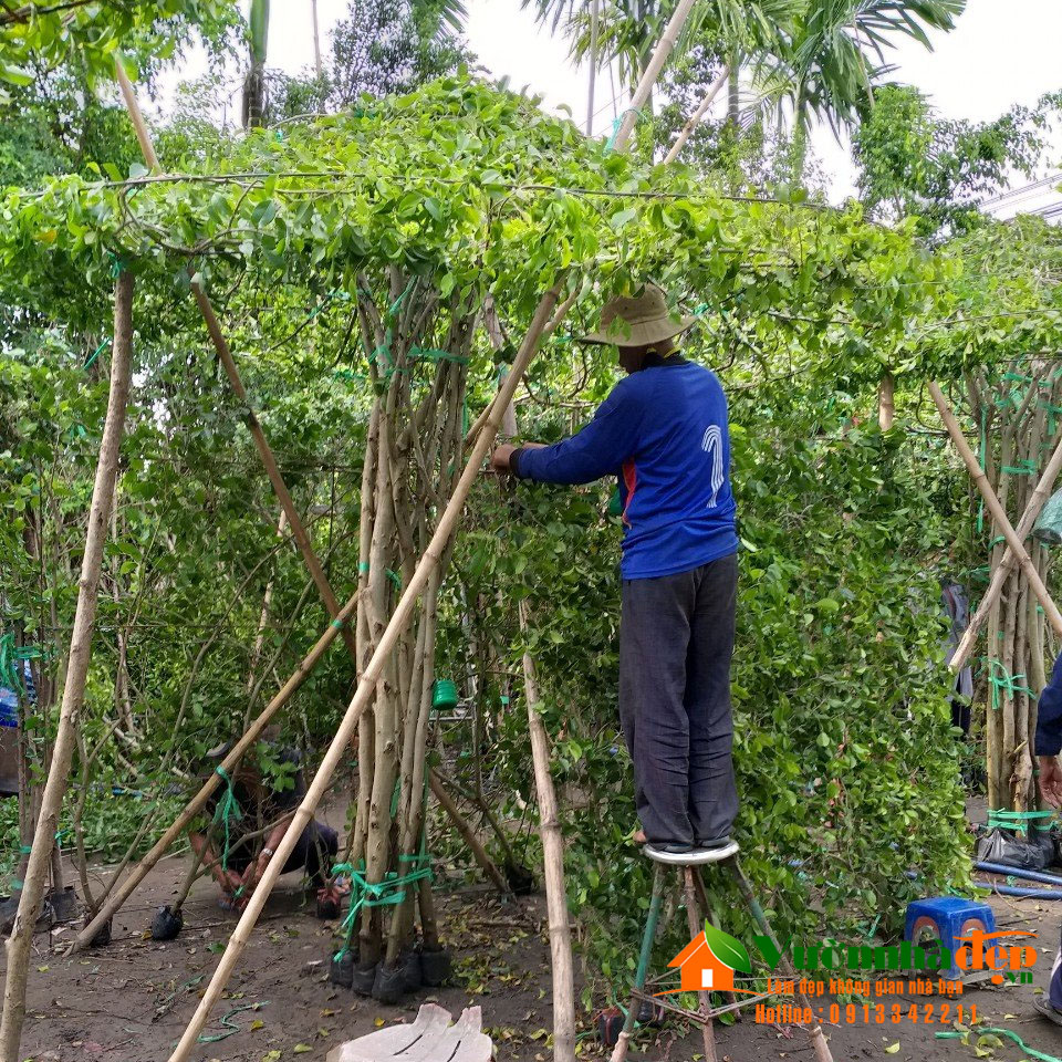 - Nhiều nhánh cây si được chọn lọc từ những cây to, khỏe đang phát triển tốt, nhiều nhánh rồi kết hợp lại với nhau tạo thành cột cây dù.