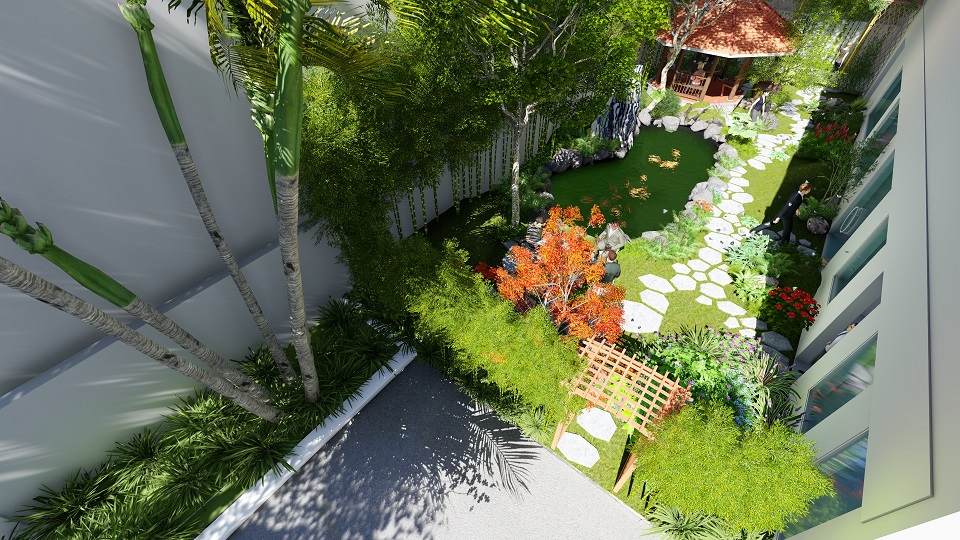 Mẫu sân vườn hồ cá Koi đẹp 1