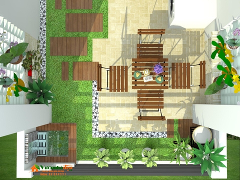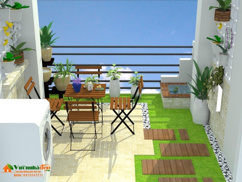 Hình 2 : Phối cảnh sân vườn đẹp trên sân thượng