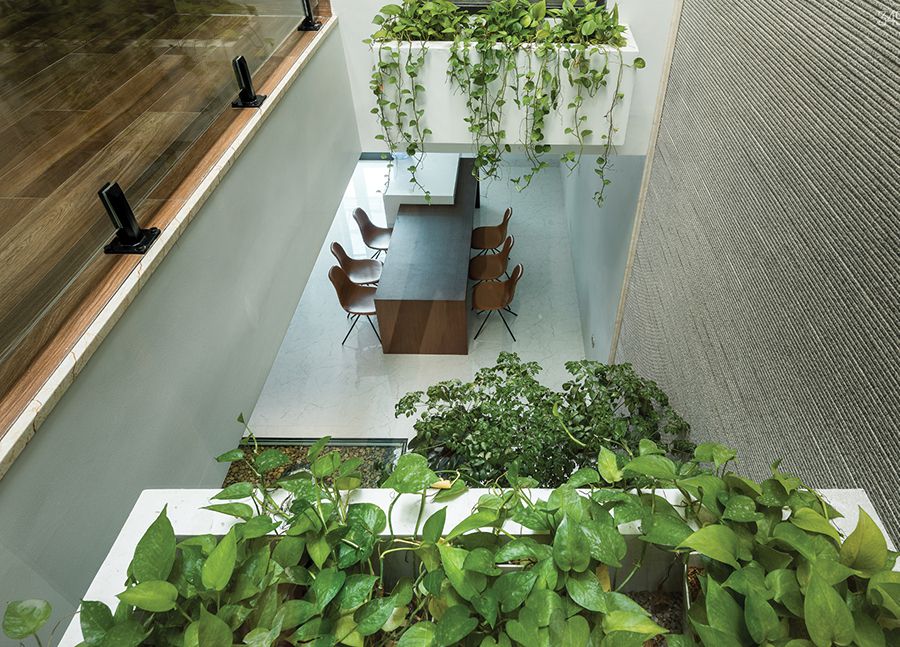- Khi bước chân vào ngôi nhà này, mỗi góc đều được đón gió và lấy sáng nên suốt thời gian ban ngày có thể tối thiểu sử dụng chiếu sáng nhân tạo. Không gian xanh trong lành được bảo phủ khắp nhà.